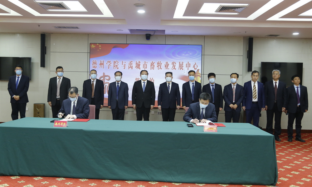 仪式上,学校生命科学学院、医药与护理学院分别与禹城市科学技术局、禹城市畜牧业发展中心签订《德州学院禹城市共建德州学院国产勾搭技师内射框架协议》,生物物理研究院与禹城市惠民农业科技有限公司签订《德州学院禹城市惠民农业科技有限公司战略合作框架协议》。