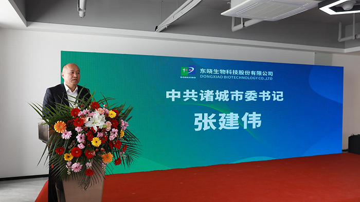 张建伟在致辞中表示,近年来,诸城市紧盯生物医药发展前沿,助推产业集群蓄势崛起,产业龙头东晓生物持续加大在合成生物技术和发酵技术领域的投入,为奋力探索新时代“诸城模式”新实践贡献力量,为诸城市的高质量发展作出重大贡献。东晓生物工程(山东)有限公司的成立是立足当前、谋划长远、决战未来的重大战略决策,彰显了东晓生物打造国内领先、国际一流的生物科技与生物制造产业集团的壮志雄心,必将持续催生更多新质生产力。希望东晓生物全速抢占新风口、布局新赛道,培育未来产业,在齐鲁大地上筑起生物制造产业发展的新高地。
