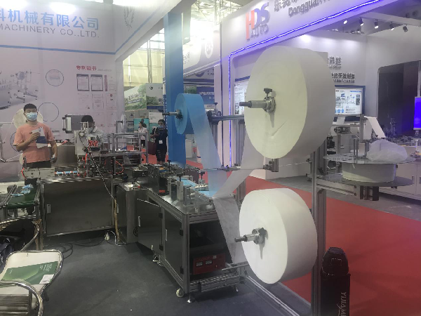 口罩生产企业现场展示制作(记者汤文诗 摄)